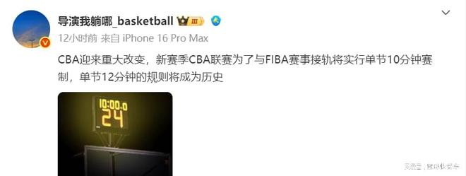 CBA目前正处于休赛期,不过,在近日却传出一大消息。根据知情人士透露,CBA新赛季或许将追随FIBA的脚步,实行单节10分钟赛制。一旦CBA下赛季真的与国际篮联接轨的话,那么,对于不少球