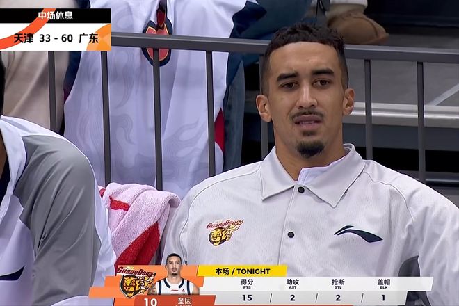次节,王少杰连续被对手封盖,但是第三次暴扣打进。奎因滑翔暴扣打进,但是回防过程中在中圈广告贴上滑倒,受伤下场。萨姆纳三分还进,胡明轩抛投不中,杜锋依旧鼓掌鼓励。萨林杰中投打进,分差已经拉开到20分以上。徐杰命中三分,继续扩大优势。徐杰助攻萨姆纳空接得分,杜锋竖起大拇指。徐杰三分再中,萨林杰单手抢板单手投篮得分,上半场天津队33比60大比分落后。詹姆斯12分7篮板;徐杰6分4助攻,萨林杰12分5篮板,奎因15分,萨姆纳13分6篮板5助攻3抢断。