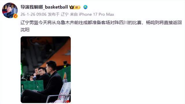 - 北京时间1月26日,辽宁媒体人导演我躺哪在社交平台爆料称,辽宁男篮主帅杨鸣已经下课了,接替的他的人是西班牙籍...发表于: 01-26 15:07