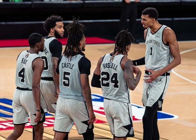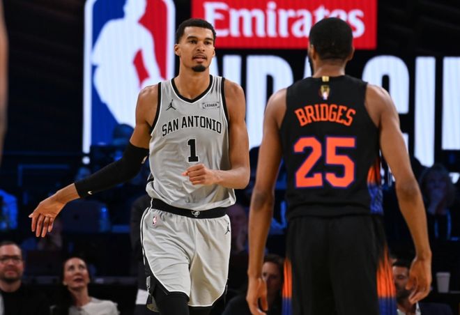北京时间12月17日,NBA杯赛决赛打响,尼克斯VS马刺,在中立场地拉斯维加斯进行。本场比赛不计入常规赛成绩,只决定本赛季杯赛归属。不过从开赛以来整体表现来看,两队都属于最强一档,战绩同为18胜7负,马刺上一场在半决赛中战胜了雷霆,也被美媒定义为一场“正义之胜”。雷霆虽然前26场比赛拿下24场,但吹罚的双标待遇,让雷霆被高估。马刺这边一直很稳,中间文班亚马虽然受伤缺阵,但在波波维奇钦点接班人米奇的领导下,球队还是打出9胜3负的战绩。本场比赛文班亚马继续打替补,球队得分点分布均匀。