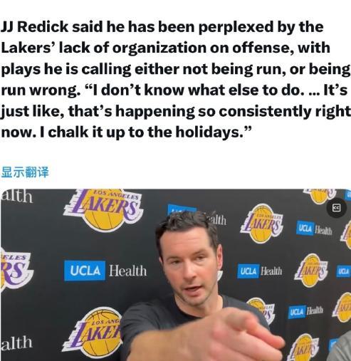 不满湖人打球混乱!雷迪克:我们球队没人执行我的战术!