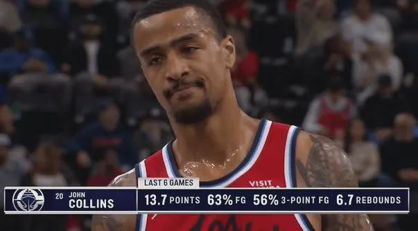 最近三场比赛科林斯全部首发,合计运动战31中23(74%),其中三分球13中9(69%),场均砍下19.3分5.3板1帽,泰伦卢终于找到他的使用说明书。