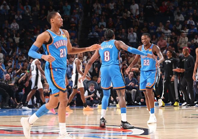 第四节俨然失去悬念,不过马刺没放弃,文班亚马扣篮,哈珀轰三分球,约翰逊内突外投追到只差12分。亚历山大回来后开始造杀伤,卡鲁索跳投,尚帕尼续上三分,亚历山大面对包夹助攻卡鲁索轰三分,杀死比赛悬念。最终雷霆主场119-98大胜马刺,迎来四连胜。