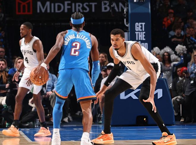 北京时间1月14日,NBA常规赛迎来焦点大战,雷霆主场对阵马刺。雷霆此前的战绩为33胜7负,排名西部第一,战绩也是联盟第一;马刺此前的战绩为27胜12负,排名西部第二。1个月前,双方第一次交手时,文班亚马复出打替补,结果马刺2分险胜,此后再度相遇时,马刺分别20分大胜和15分完胜,本赛季已经三杀雷霆!从那之后,雷霆跌落神坛,包括输森林狼,27分惨败黄蜂等。但马刺仿佛也刻意保存实力,输开拓者、森林狼等,就和雷霆保持4个胜场差距,韬光养晦只做西部第二,不争第一。