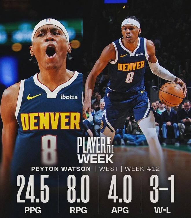 沃特森能够荣膺西部周最佳,估计很多球迷都没想到。在约老师长期缺阵的情况下,掘金还能保住西部第三,沃特森功不可没。这是沃特森生涯第一次荣膺周最佳,他也成为约基奇和穆雷之后,本赛季第三个拿到周最佳的掘金球员。