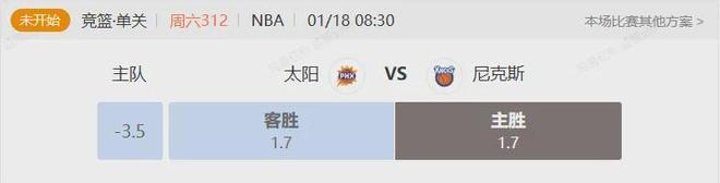 网易红彩今日挑选专家张子鸣带来一场NBA的赛事解析,更多精彩方案可下载“网易红彩”App进行查阅!1.专家:张子鸣竞篮 周六312NBA太阳VS尼克斯开赛时间:2026-01-18 08:30:00太阳队