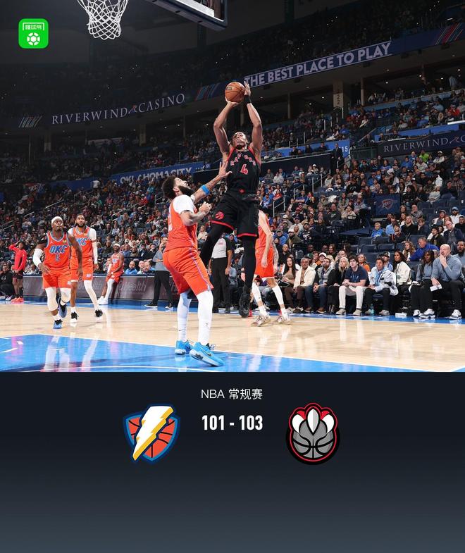 猛龙103101险胜送雷霆赛季第10败,奎克利23+11,亚历山大24分