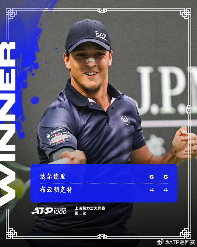 而在稍早前结束的2025ATP上海大师赛第二轮,中国选手布云朝克特0-2(4-6/4-6)不敌对手26号种子卢西亚诺·达尔德里,无缘第三轮。