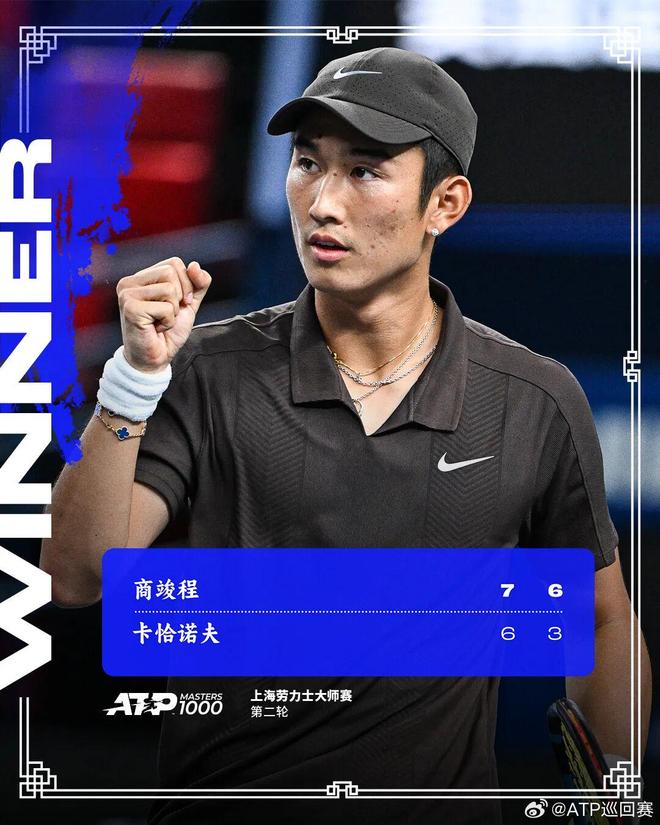 10月4日晚间,2025ATP上海大师赛第二轮,中国小将商竣程迎战赛会9号种子卡恰诺夫。最终,商竣程以2-0(7-6(3)/6-3)击败卡恰诺夫,职业生涯首次击败世界排名TOP10、首进大师赛32强!第三轮他将对阵葡萄牙选手博杰斯!