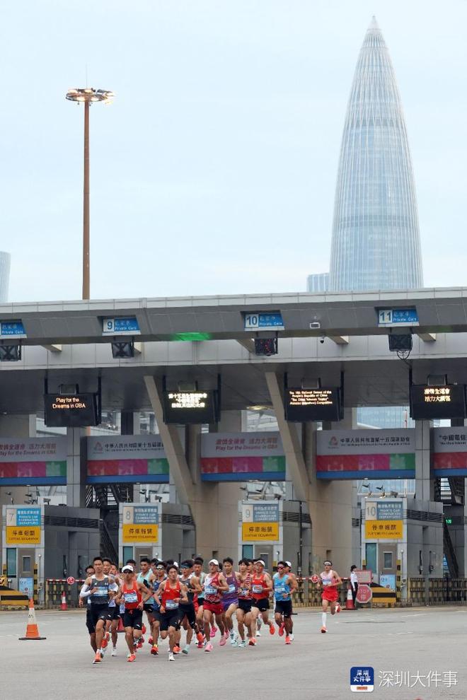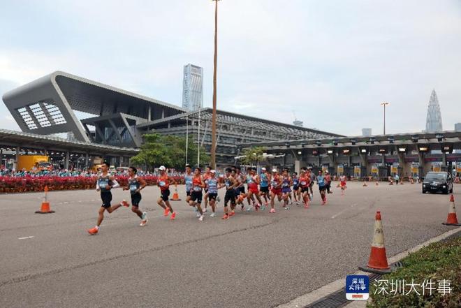 2025年11月15日,全运会首个跨境马拉松开跑,清晨7:06,男子马拉松大部队通过深圳湾口岸,跑入香港境内。