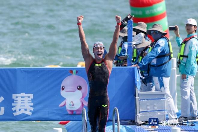 2025年11月6日,第十五届全运会马拉松游泳比赛男子组决赛,湖北队选手张子扬以1小时59分55秒3的成绩夺得冠军,山东队选手刘培鑫和福建队选手兰天辰分别获得亚军和季军。
