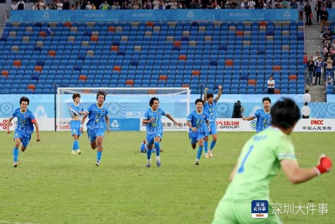 2025年10月25日,十五运会男子足球U18金牌赛,点球大战中辽宁队(蓝)以5:4战胜山东队。在山东队19号王宇轩射失点球后,辽宁队队员冲向教练庆祝。