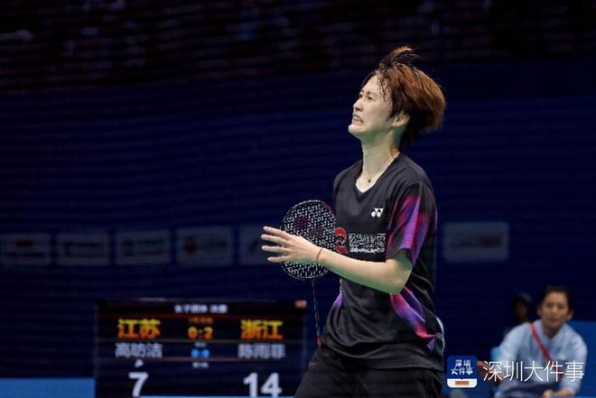 2025年11月14日,十五运会羽毛球女子团体决赛,浙江队的陈雨菲飞扑救球失败。陈雨菲再次对阵江苏队高昉洁,最后在第3场比赛中取得胜利,浙江以3:0取胜并获得金牌。