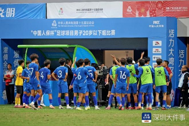 2025年11月12日,十五运会男子足球U20组金牌赛,广东队在点球大战中负于湖北队。场边的广东球迷边哭泣边为球员打气。