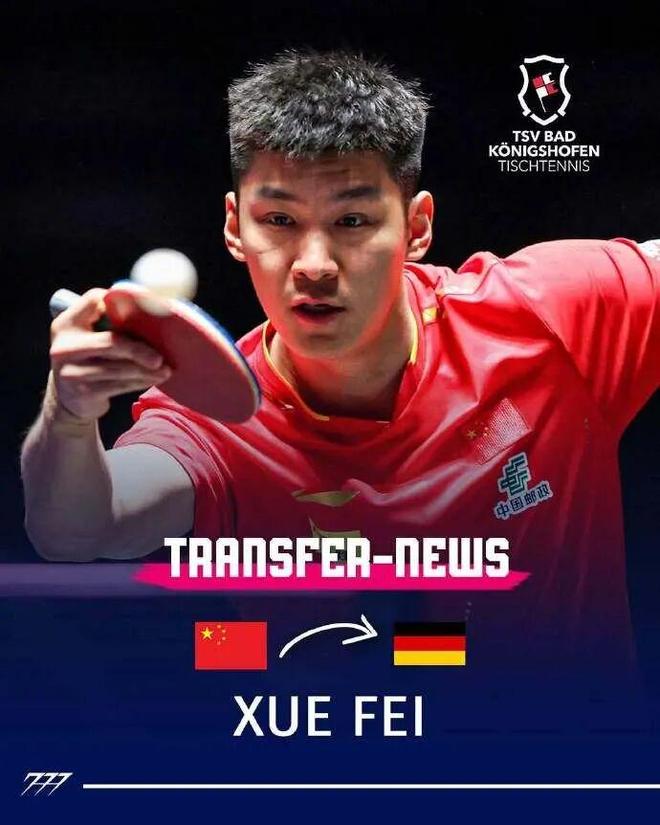 就此,薛飞成为樊振东后本赛季第二位征战德甲的中国球员,两位现役中国国手将在德甲相聚!更引人注目的是,根据赛程安排,薛飞所在的巴特柯尼希斯霍芬俱乐部与樊振东效力的萨尔布吕肯俱乐部,将在2026年1月24日正面交锋,这场在德甲赛场上演的“中国德比”,也将点燃中国乃至全球乒乓球迷的热情!