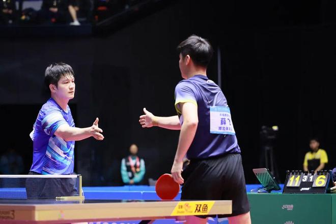 1999年出生的薛飞,世界排名第69位,是右手直板两面反胶打法。在2025年WTT澳门冠军赛中,他曾以3-0横扫日本名将张本智和,并击败过德国选手杜达、邱党等强敌。