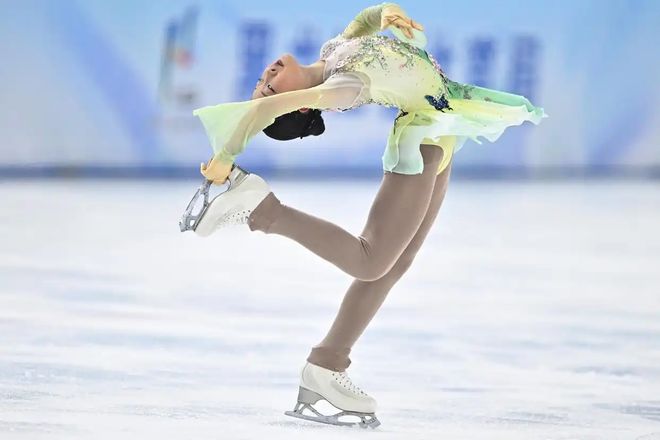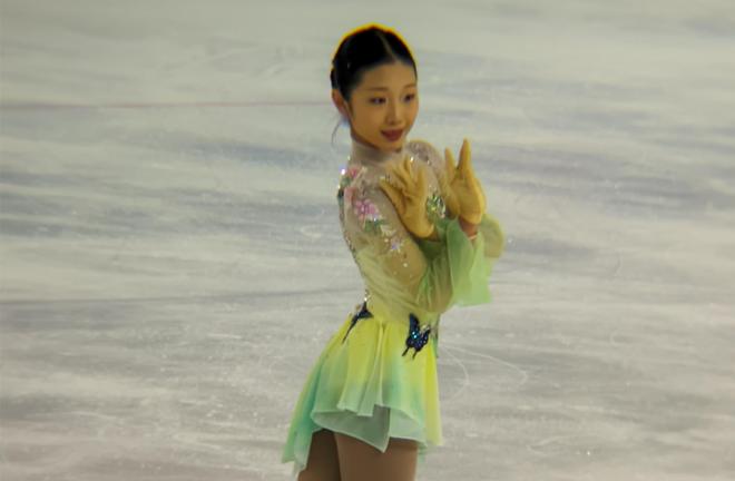 2025全国花样滑冰锦标赛女单自由滑比赛中,14岁的金书贤在《梁祝》的配乐声中,化身为一只美丽的蝴蝶翩翩起舞,她奉献了2025年个人最完美的一次演绎,在自由滑节目拿到139.77分的高