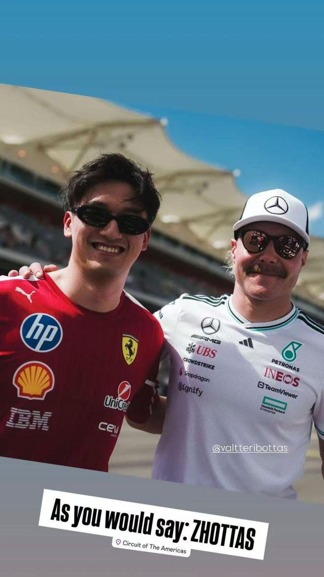 在加入凯迪拉克后,周冠宇也完成了与老队友博塔斯的重逢。