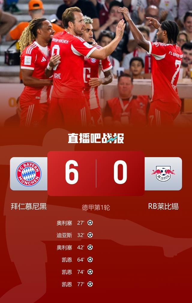 德甲第2但净胜球1莱比锡豪取3连胜,但因惨败拜仁净胜球为负