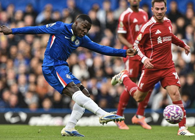 雷速体育10月5日讯 正在进行的英超第七轮的一场焦点战中,切尔西半场1-0领先利物浦。比赛第14分钟,凯塞多一脚世界波帮助切尔西首开纪录。利物浦方面索博斯洛伊近在咫尺的射门被对方后卫挡出,伊萨克的头球高出横梁,红军暂时没有斩获。