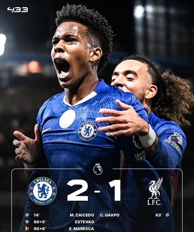 当主裁判吹响终场哨,斯坦福桥球场的欢呼声仿佛能掀翻顶棚,18岁巴西天才埃斯特旺第95分钟绝杀,切尔西2-1笑到最后,利物浦遭遇3连败让出榜首!