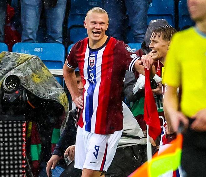 作为当今的英超第一中锋,哈兰德在本赛季的进攻火力依然非常凶猛,联赛当中8场比赛打进了11粒进球送出3次助攻,国家队的6场比赛当中打进了12粒进球,可以说一人扛着球队前进。相较