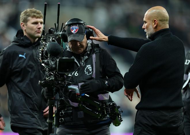 英超第12轮的一场较量中,曼城客场1-2不敌纽卡斯尔联。在比赛结束之后,曼城主教练瓜迪奥拉被拍摄到走向了场边的一名摄影师,并且还摘下他的耳机对他说了些什么。说完自己要说的
