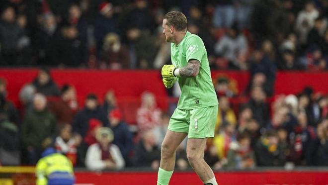 上半场尾声阶段,布鲁诺·费尔南德斯一记势大力沉的远射直奔死角,皮克福德飞身侧扑,将球拒之门外;下半场,齐尔克泽近距离头球攻门角度刁钻,他又一次极限横移,单掌将球托出横梁。据Opta数据显示,这次扑救所化解的,是一个预期进球概率极高的必进球机会。